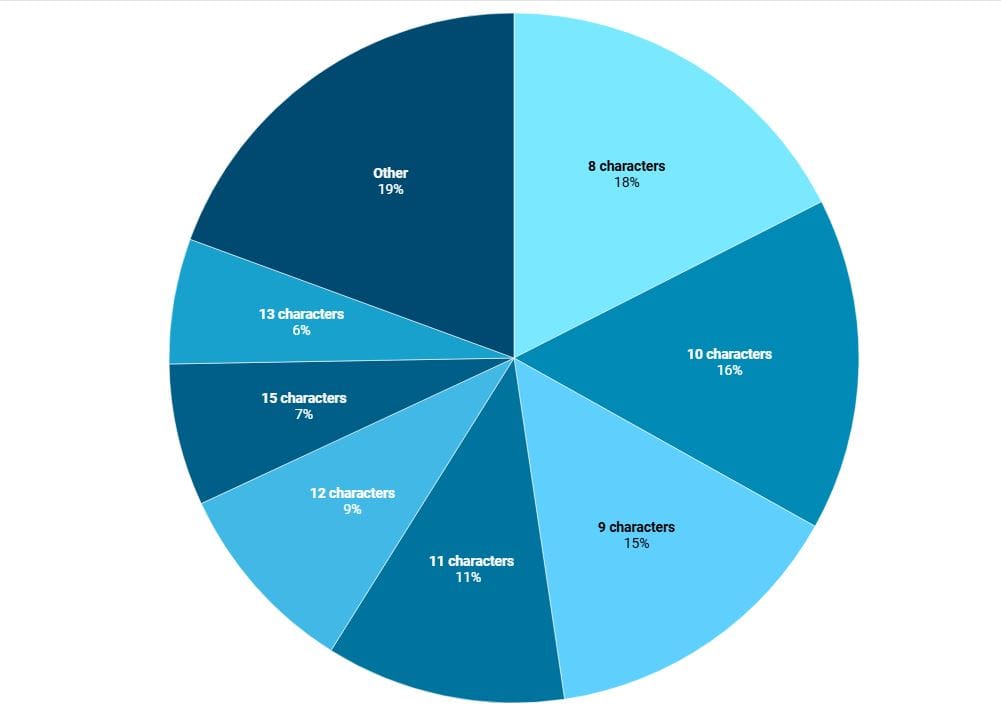 - 65.8% of analyzed passwords were shorter than 12 characters, with only 3.2% containing 16 characters or more