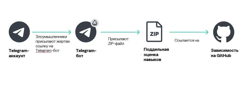 While GhostHire and GhostCall share backend infrastructure and toolsets, the former substitutes video calls with fake job postings distributed through Telegram bots. When developers interact with these bots—linked within the job advertisements—they receive either a malicious ZIP archive or a GitHub repository link.