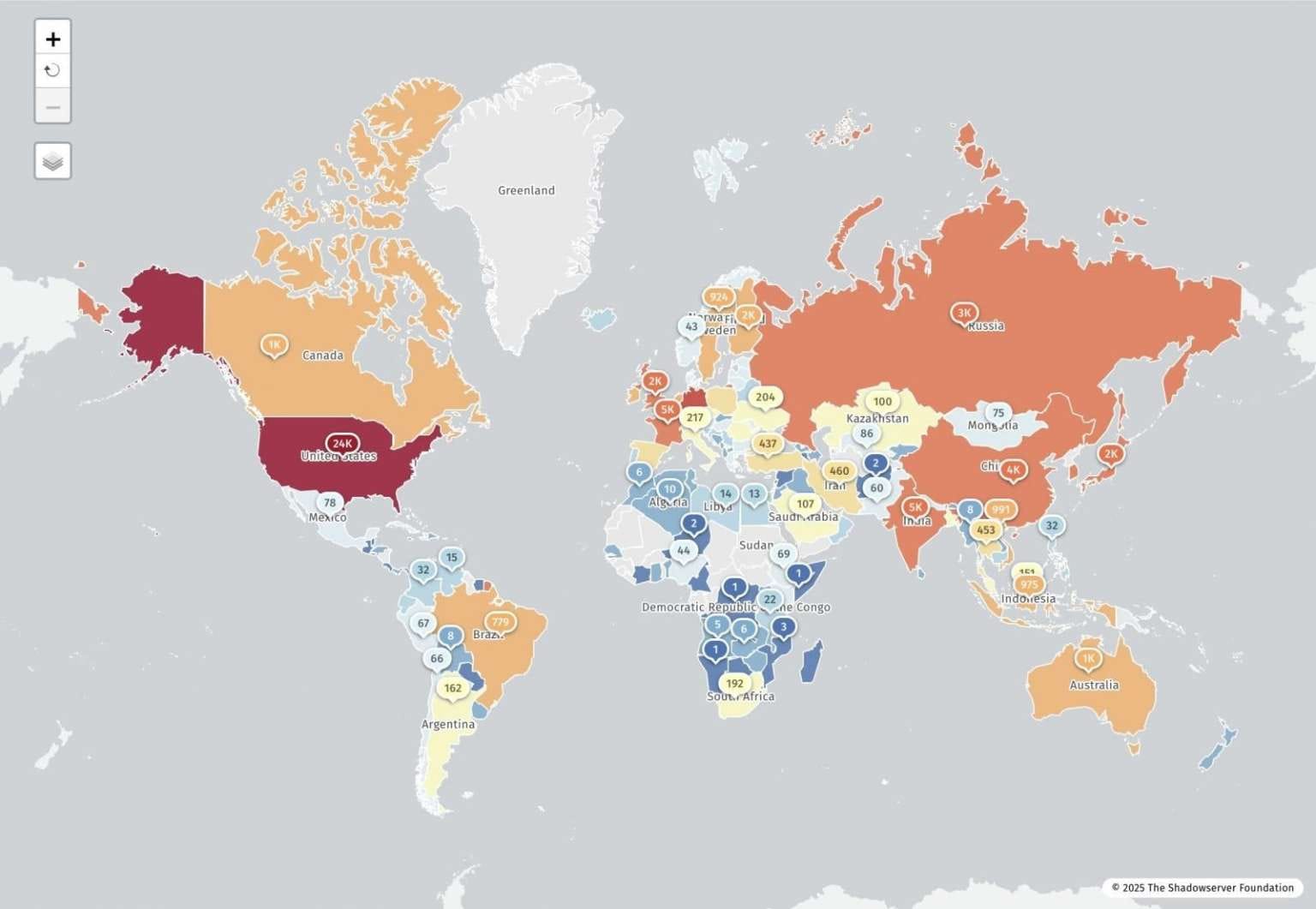 Shadowserver researchers identified 77,664 vulnerable IP addresses globally, including approximately 3,000 in Russia. They used a methodology from Searchlight Cyber and Assetnote that sends specific HTTP requests to servers and confirms vulnerabilities based on the response.