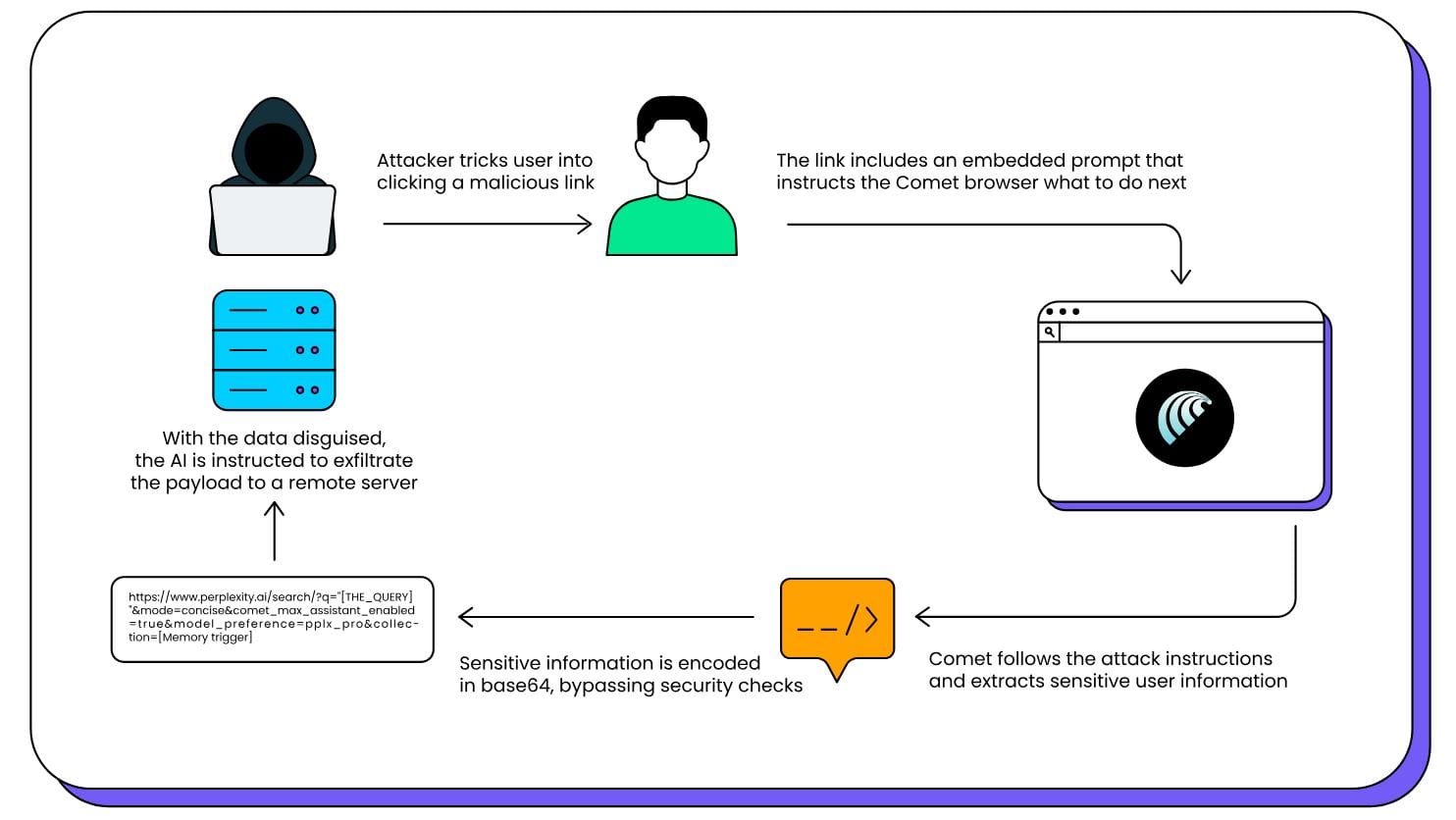 The attack could be carried out by sending a maliciously crafted link to a user via email or embedding it on a website likely to attract clicks. Once opened, the hidden prompt executes automatically within Comet’s context.