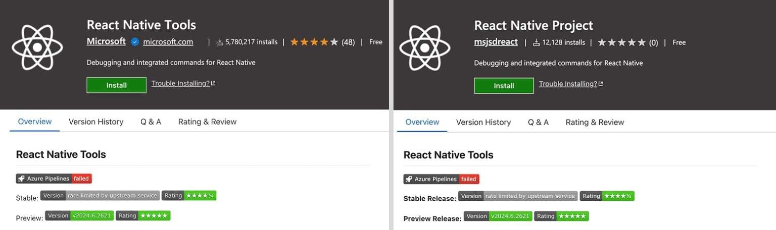 - msjsdreact.react-native-vsce