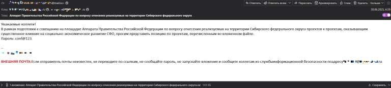 In July 2025, Doctor Web specialists investigated an incident at a Russian Federation state institution where unwanted emails were being sent from a corporate mailbox. What started as a seemingly simple email compromise investigation revealed something far more serious: a targeted attack by the hacker group Cavalry Werewolf, aimed at collecting confidential information and network configuration data.
