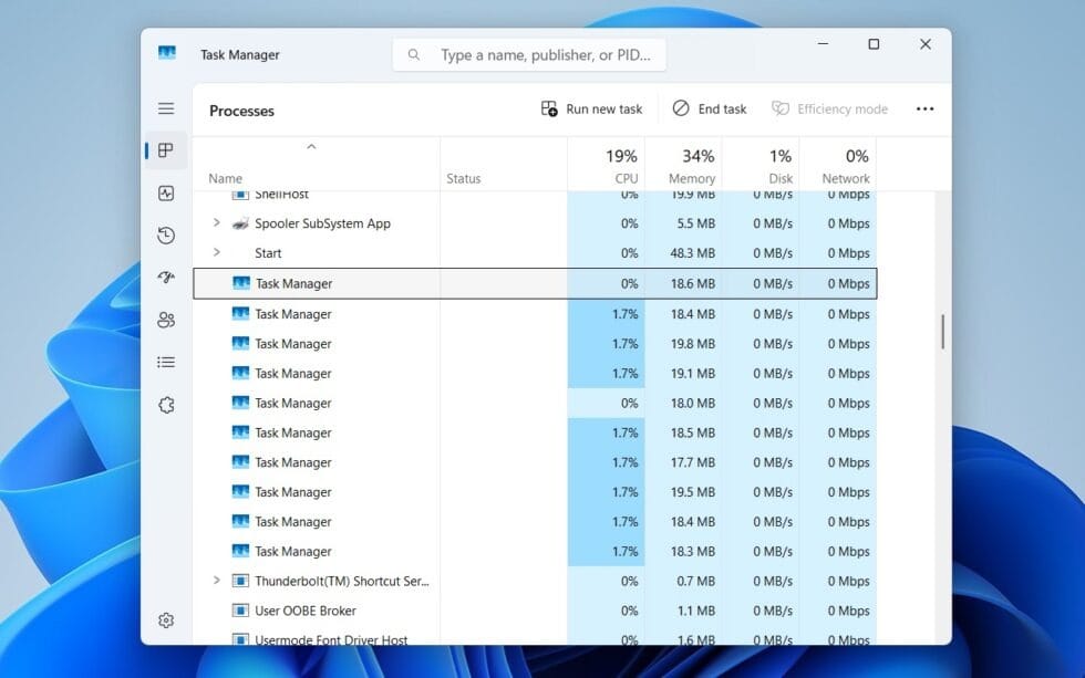 Each Task Manager instance consumes approximately 20 MB of RAM and up to 2% of CPU power. While a single instance may seem minor, multiple background processes quickly add up. Microsoft warns that this accumulation "can cause noticeable slowdowns in the operation of other applications."